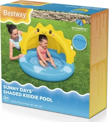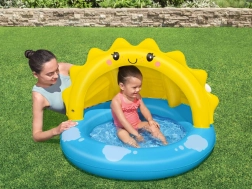 A felfújható Bestway medence tökéletes választás gyermekei számára a forró nyári napokon. Barátságos napocskás és kék felhős dizájnjával nemcsak örömöt, hanem biztonságos menedéket is nyújt a nap elől.
