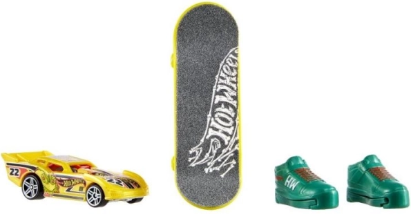 A szett tartalmaz egy Hot Wheels kisautót és egy fingerboardot a különféle játékfunkciók és a gyűjtői érték ötvözéséhez.