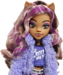 Clawdeen Wolf tökéletesen összehangolt „creep-chic” megjelenésben érkezik, amely ötvözi a kényelmet és a horrorosan bájos stílust. Hosszú, lila, hullámos haj, puha szőrös kabátka, crop top és holdmintás leggings alkotják az összeállítást, amit a gyerekek imádni fognak. A több ponton ízületes kivitel a deréknál, könyöknél, csuklónál és térdnél könnyedén lehetővé teszi a csillagos pózokat.