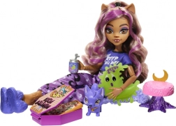 Lépj be az éjszakai kalandok világába a MONSTER HIGH Creepover Party Clawdeen Wolf babával. A stílusos vérfarkaslány plüss köntöst, puha, holdmintás pizsamát, aranyos mamuszokat és rengeteg tematikus kiegészítőt egy pizsamapartira kapott, köztük párnát, italt és „szörny pizzát”. A hűséges kis kedvenc, Crescent is vele tart a még fantáziadúsabb játékért.