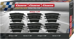 A minőségi 1/30°-os kanyar (R1) ideális kompakt ívek és technikai szekciók kialakításához, amelyek próbára teszik vezetési képességeit. A Carrera Evolution, Digital 132 és Digital 124 rendszerekkel való teljes kompatibilitás garantálja az egyszerű telepítést és a meglévő pálya zökkenőmentes bővítését.