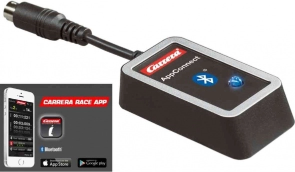 Lépj be az okos versenyzés világába a Carrera AppConnect adapterrel. Ez a Bluetooth modul összeköti a Carrera DIGITAL 132/124 autópályádat a Carrera Race App alkalmazással, és kínál élő statisztikákat, fejlett versenymódokat és személyes pilótaprófilokat közvetlenül a telefonodon vagy táblagépeden.