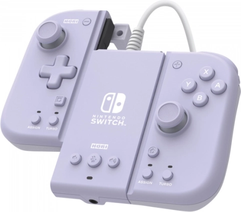 A HORI Split Pad Pro + adapter szett ideális azoknak a játékosoknak, akik nagyobb kényelmet és pontosságot szeretnének otthon és útközben egyaránt. A kontrollert egyszerűen szétszedheted és Joy-Conok helyett csatlakoztathatod kézikonzolos játékhoz, vagy az adapterrel vezetékes kontrollerként használhatod a tévén. A levendula szín stílust ad a konzolodnak.