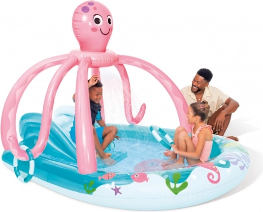 Ajándékozza meg a gyerekeket nevetéssel teli nyárral ezzel a tágas, polip témájú játszóközponttal. Kínál beépített vízpermetet a felfrissüléshez, kényelmes extra felfújható alátétet, kis csúszdát és gazdag tengeri díszítést. A csomag része két felfújható karika és egy javítófolt. Ideális kerti kültéri szórakozáshoz.