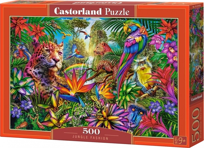 Élvezze a pihenést a Castorland kirakóval, Dzsungeldivat motívummal. A csomag 500 darabot tartalmaz, az összeállított kép mérete 47 × 33 cm – ideális az állatos és természetközeli témák kedvelőinek, valamint egy nyugodt, családi délutánhoz.