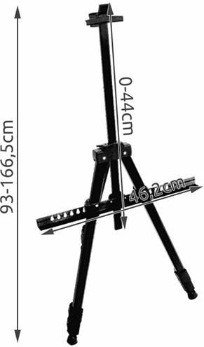 A festőállvánnyal fejlesztheted festészeti képességeidet akár otthonod kényelméből, akár a természet ölelésében. Az alumínium szerkezete rendkívül könnyű és könnyen hordozható. Az anyaga ellenáll a korróziónak és más külső tényezőknek, amelyek festés során a szabadban hatással lehetnek rá. A keret magasságát saját igényed szerint állíthatod. Praktikus fogantyús tokja könnyű tárolást biztosít az állvány számára, vagy segíti az egyik műteremből a másikba történő szállítást.