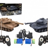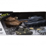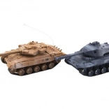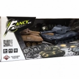 A készlet mindent tartalmaz az azonnali játékhoz: 2, részletesen kidolgozott, 25 cm hosszú tank, mindegyik saját frekvencián a zavarásmentes, korrekt összecsapásért. Az irányítás intuitív, a torony teljes, 360°-os tartományban forog. A valósághű hang- és fényhatások fokozzák a hangulatot, az „életek” játékmód pedig eldönti a csata győztesét.