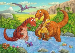 A készlet két színes, játékos dinoszaurusz témájú puzzle‑t tartalmaz, amelyek fejlesztik a finommotorikát, a türelmet és a logikus gondolkodást. A precíz vágásnak köszönhetően a darabok tökéletesen illeszkednek, így az összerakás a kezdők számára is élvezetes.