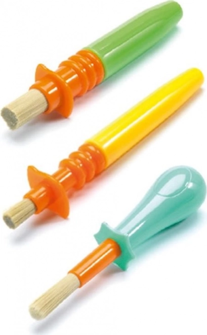 A DJECO gyerek ecsetkészlete minőségi sörtékkel és ergonomikus, kis kezekhez tervezett nyéllel. Ideális első festésekhez, támogatja a finommotorikát, a kreativitást és a biztonságos fogást 3 éves kortól.