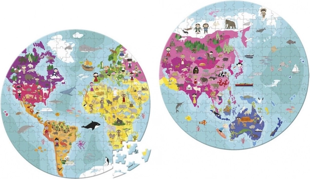 A JANOD Kerek Földgömb puzzle gyönyörűen illusztrált, és ideális gyerekeknek és felnőtteknek, akik szeretnek kirakózni és felfedezni. A darabok összeillesztése közben a gyerekek megtanulják, hol élnek a különböző állatfajok a világon, miközben gyakorolják a koncentrációt.