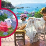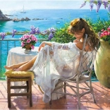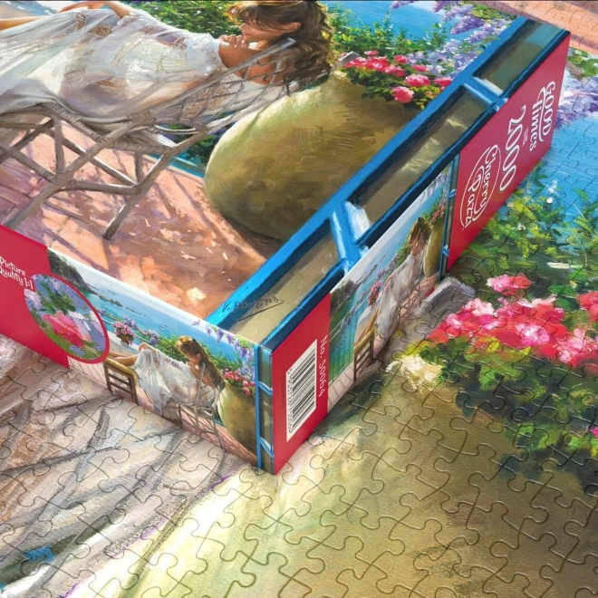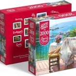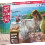 Fedezze fel a tengerparti nyugalom báját. A CHERRY PAZZI puzzle egy finom, művészi jelenetet ábrázol: egy nő pihen a teraszon, kilátással az óceánra. A 2000 gondosan kivágott darab ideális a nagyobb kihívásokat és a csodaszép motívumokat kedvelőknek.