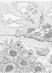 Élvezze a gyönyörű tájképek színezését világítótoronnyal, vitorlással és virágokkal, mely csodálatos menekülést nyújt a színek világába.