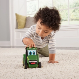 A legkisebbeknek szánt szórakoztató JOHN DEERE Johnny traktor egyszerű kezelést kínál: nyomd meg a tetőt, és indulj! A kompakt, 15 cm-es méret ideális a gyerekkezekbe, és a biztonságos játék elengedés után gyorsan előre indul.