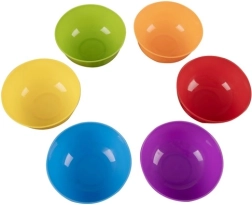 A színes tálkák és figurák játékos formában vezetik be a gyerekeket a színek felismerésébe és az egyszerű számolásba. Ideális az iskolára készüléshez.