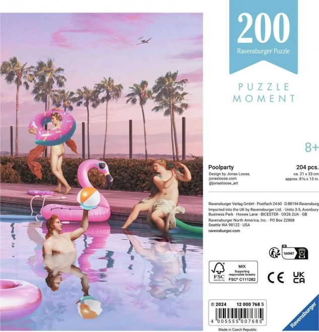 Élvezze a nyugalom és a kikapcsolódás pillanatait a Puzzle Moment sorozat RAVENSBURGER kirakójával. A stílusos medenceparti motívum, a 200 precíz darab és az összeállított kép kompakt mérete, 33 × 21 cm, ideális a rövid, mégis kielégítő kirakózáshoz. Kezdőknek és tapasztalt kirakórajongóknak egyaránt remek – a RAVENSBURGER minőség garantálja a tökéletes élményt.