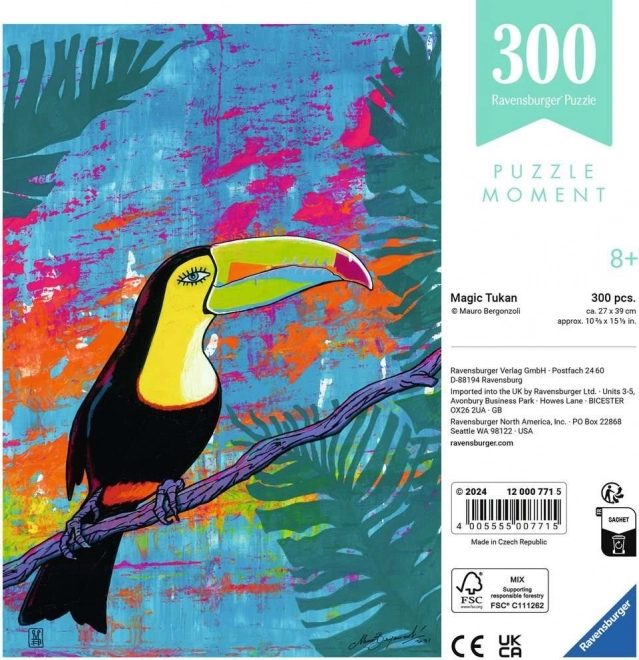 Fedezze fel a kirakás örömét a RAVENSBURGER Puzzle Moment: Varázslatos tukán készlettel. Ideális rövid, relaxáló percekre, amikor kikapcsolna, és egy gyönyörű, színes, egzotikus madarat ábrázoló motívumra szeretne összpontosítani. A magas minőségű kidolgozásnak és a pontos kivágásoknak köszönhetően a darabok könnyen illeszkednek és stabilan tartanak.
