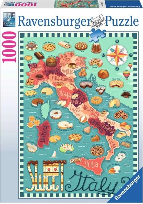 Élvezze a pihenést az egyedi motívum kirakásával, amely az olasz régiókat és kedvelt desszertjeiket kapcsolja össze. A RAVENSBURGER puzzle prémium minőségéről, a darabok pontosságáról és tartósságáról ismert, ami gördülékeny és szórakoztató kirakást biztosít.
