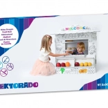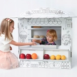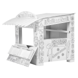 Interaktív karton játékpult gyerekeknek, amely a képzeletet serkenti és a kreativitást fejleszti. A színezhető design további szórakozási réteget ad hozzá.