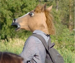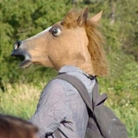 Ez a maszk valósághű részleteket kínál, hasonlóan egy valódi lófejhez, beleértve a füleket, szemeket és a sörényt.