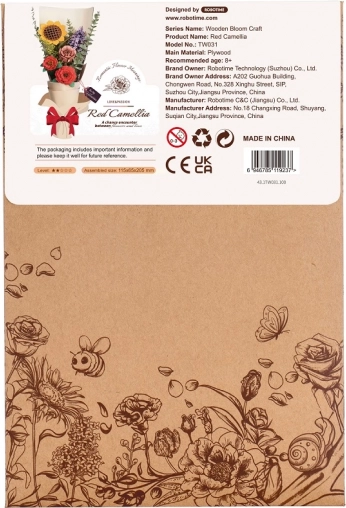 Ez az elegáns 3D fa kirakó részletgazdag vörös kamélia modellt hoz létre kaspóban. A kiváló minőségű, környezetbarát fából készült elemek pontosan illeszkednek egymáshoz, a kész modell pedig stílusos dekorációként szolgálhat asztalon, polcon vagy dolgozószobában.