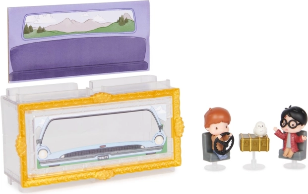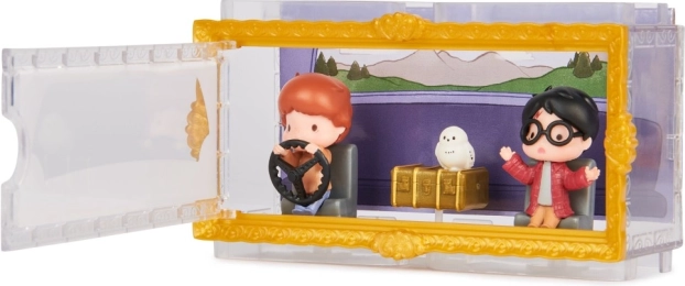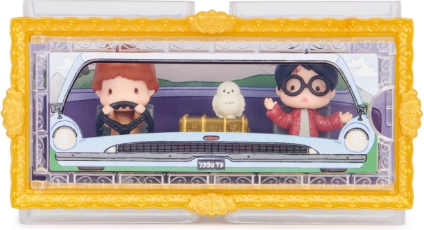 Lépj be a Titkok kamrája világába a részletgazdag, 3,81 cm-es mini figurákkal. Harry és Ron a Weasleyék ikonikus repülő autójában, valamint Hedvig bagoly minden rajongót elvarázsol. Az átlátszó doboz tematikus háttérrel azt az érzetet kelti, mintha a szereplők közvetlenül az autóban ülnének – tökéletes a stílusos kiállításhoz.