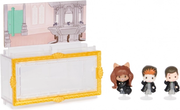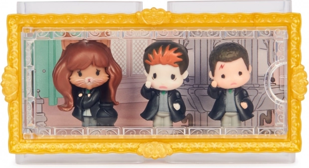 - Részletgazdag mini figurák Harry Potterről, Hermione Grangerről és Ron Weasleyről (kb. 4 cm)