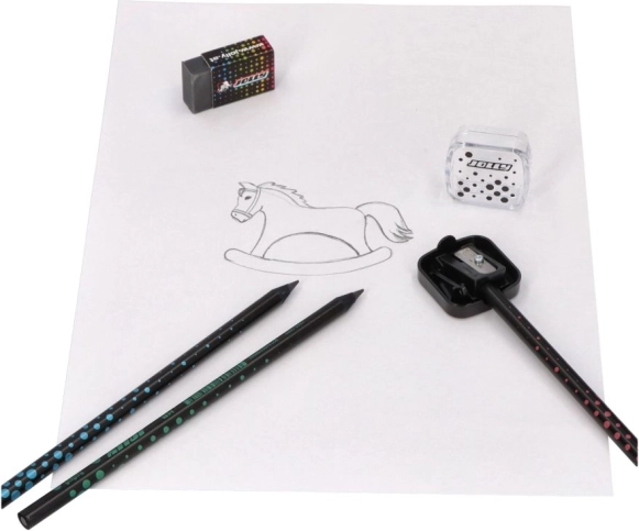 Ez a nagyszerű ceruzakészlet, radír és hegyező a Jolly Next Gen márkától ideális iskolások és művészek számára. Ergonomikus kialakításának köszönhetően kényelmesen illeszkedik a kézbe, és hosszan tartó rajzolást biztosít.