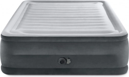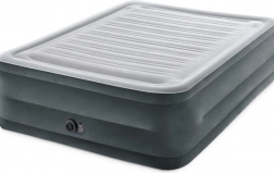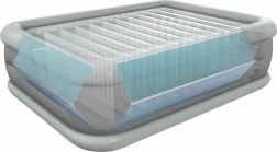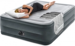 Az extra magas INTEX felfújható matrac teljes értékű alvást nyújt két személy számára otthon és útközben. A beépített elektromos pumpa villámgyors felfújásról és leeresztésről gondoskodik, míg a flockolt (velúros) felület kellemes tapintású, és megakadályozza a lepedő csúszkálását. A masszív felépítés és a megerősített kamrák stabilitást és gerinctámaszt biztosítanak egész éjjel.