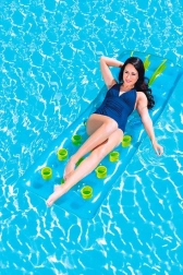 Ez a könnyű és praktikus felfújható matrac ideális relaxáláshoz medencénél és a tengernél is. A rekeszes szerkezetnek köszönhetően stabil fekvést és jobb súlyelosztást biztosít egészen 90 kg-ig. Könnyen felfújható, leereszthető és hordozható – súlya csupán 1,3 kg.