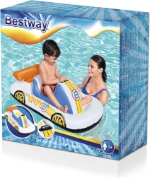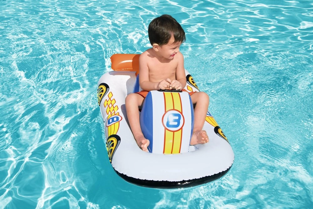 Biztosítson a gyerekeknek biztonságos vízi szórakozást a könnyű és helytakarékos, versenyautó formájú felfújható csónakkal. A színes grafika, a kényelmes támasztó ülés és a felfújható alj komfortot és stabilitást ad, míg az integrált kapaszkodók extra biztonságot nyújtanak játék közben.
