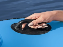 Két erős fogantyú és a szék körüli zsinór könnyebb beszállást és kényelmesebb, biztonságosabb kezelhetőséget biztosít.