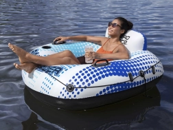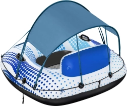 Élvezze a nyarat maximális kényelemben a BESTWAY napellenzős, háttámlás felfújható úszógumival. Ez a tartós, kék-fehér PVC úszógumi kellemes árnyékot, kényelmes háttámaszt és italtartót kínál a tökéletes vízi pihenéshez. A biztonsági szelepen és a CLASP 'N GO rendszerén keresztül könnyedén összekapcsolható egy másik úszógumival.