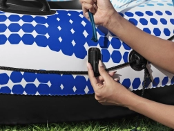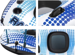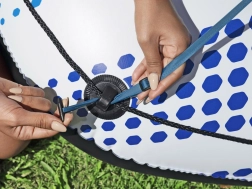 A biztonságos és könnyű használat érdekében az úszógumi biztonsági szeleppel rendelkezik a levegőszivárgás ellen, valamint okos CLASP 'N GO rendszerrel a másik úszógumival való összekapcsoláshoz. A csomagban javítófolt is található váratlan, kisebb sérülésekhez.