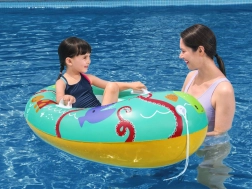 Puha felfújható aljával és két légkamrájával a csónak kényelmes és biztonságos hajózást biztosít a legkisebbek számára.
