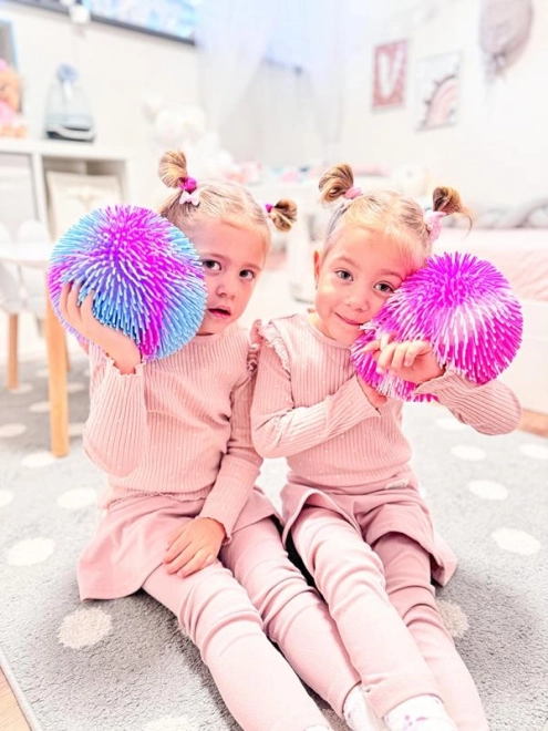 A rózsaszín–fehér, világító, rojtos labda tökéletes választás aktív szórakozáshoz otthon és az óvodában. Minden mozdulatra felvillan, így motiválja a gyerekeket a további játékra és mozgásra. A puha „tüskék” kellemes tapintási visszajelzést adnak és ösztönzik az érzékszervi fejlődést.