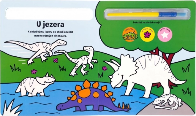 Merülj el az ősi lények világában a Színezz ki! Dinoszauruszok könyvvel. Ez a könyv kemény lapokkal és részben színes képekkel rendelkezik, amelyeket gyermekeid újra és újra kiszínezhetnek. Elég egy kis víz, és a színek varázslatosan megjelennek a fehér papíron, majd ugyanúgy gyorsan eltűnnek, ahogy megszáradnak.