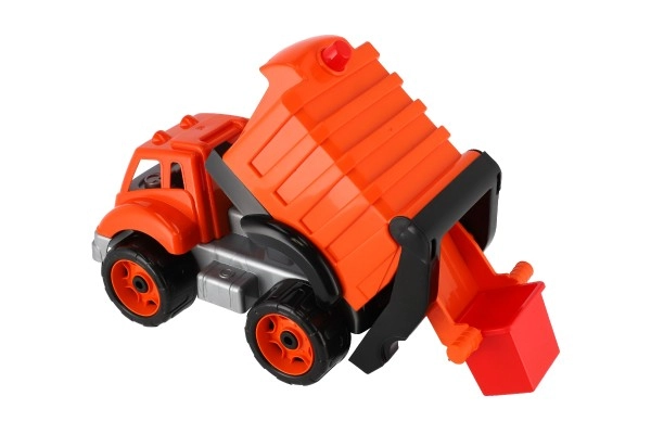 Fedezze fel a strapabíró műanyag kukásautót, amellyel a gyerekek rengeteg mókát élhetnek át a kertben, a homokozóban és a gyerekszobában is. A feltűnő narancssárga dizájn, a masszív kerekek és a kompakt méret biztonságos és kreatív játékot támogat.