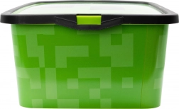 A doboz tartós műanyagból készült, és eltávolítható fedéllel rendelkezik a könnyű hozzáférhetőség érdekében. Robusztus kialakítása biztosítja, hogy a tartalom jól védett lesz. Az élénk pixeles dizájnnal és ikonikus Minecraft elemekkel, ez a tároló doboz egyszerűen nem hiányozhat egyetlen gyerekszobából vagy játékszobából sem.