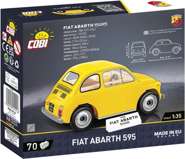 Ez a részletgazdag, híres Fiat ABARTH 595 modell teljes egészében COBI kockákból készült, és kiemelkedik magas szintű minőségével. Matricák helyett tartós, fagynak és fakulásnak ellenálló nyomatokat használ, amelyek intenzív játék mellett is szépek maradnak. Az elkészült modell kb. 9 cm hosszú, és tartozik hozzá egy névtábla az autó nevével.