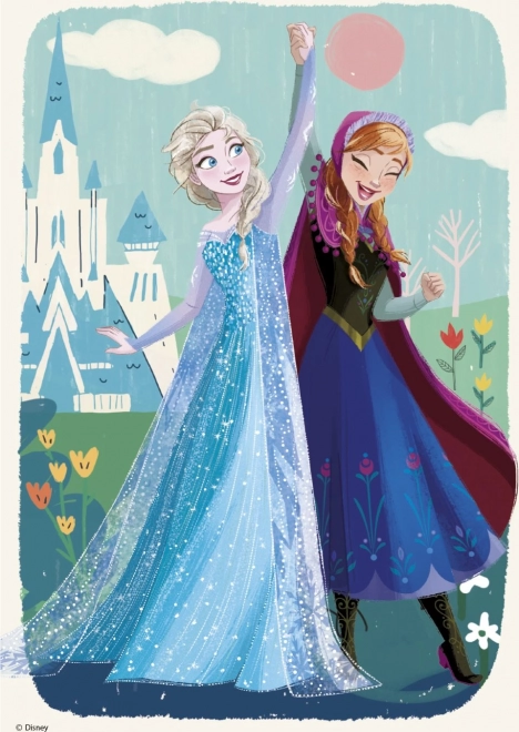 Ez a Jégvarázs puzzle készlet Annával és Elsával két, 77 részből álló kirakós játékot tartalmaz. Ideális 5 éves kortól, mert segíti a különböző készségek és tehetségek fejlesztését.