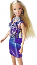 A stílusos STEFFI LOVE Super Glam baba ragyogó lila–kék ruhájában minden kis divattervezőt elbűvöl. A csomag tartalmaz csillogó ruhát, nyakláncot, hajcsatokat, fülbevalót és kézitáskát – mindent a kreatív játékhoz és divatos történetekhez.