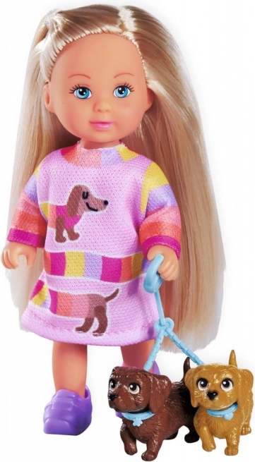 Fedezd fel a mindennapi séták varázsát a Evi Love babával és két tacskójával. A mellékelt póráznak köszönhetően a gyerekek könnyedén kitalálhatnak parkos vagy kerti jeleneteket, és fejleszthetik fantáziájukat és gondoskodó készségeiket.