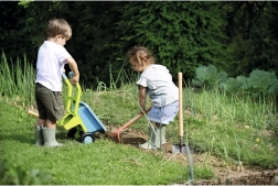 A készlet részeként eszközök, mint például locsolókanna, lapát és gereblye találhatók, amelyek lehetővé teszik a gyermekeknek, hogy utánozzák a valódi kerti munkát.