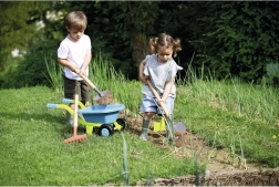 Ez a gyermek talicska 69 x 30 x 32 cm-es méretével nemcsak remek szórakozást, hanem gyakorlati eszközöket is biztosít a kertészkedéshez. Magas minőségű műanyagból készült, ami ellenállóvá és szabadtéri játékhoz alkalmasává teszi.