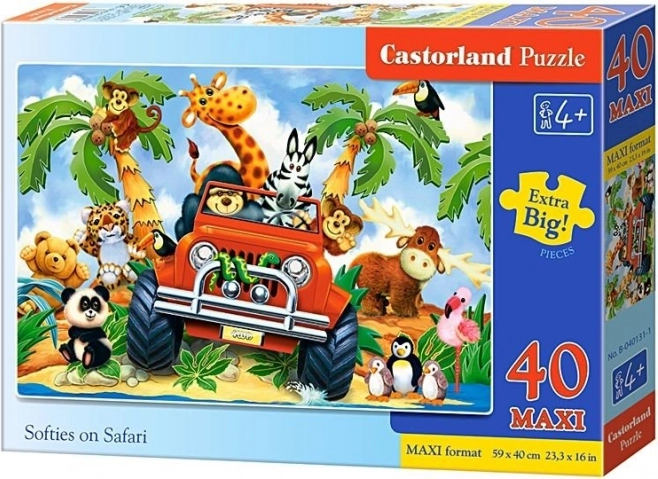Nagy méretű gyerek kirakó 40 maxi elemmel és szafari motívummal, 59 × 40 cm-es méretben. A CASTORLAND minőségi kivitele biztonságos 4 éves kortól, és támogatja a koncentrációt, a finommotorikát és a formák és színek felismerését.