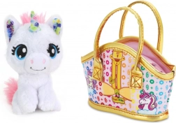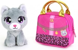 Pihe-puha plüss nagy, csillogó szemekkel, stílusos táskában elrejtve, így bárhová magaddal viheted – sétára, autóba vagy látogatóba.