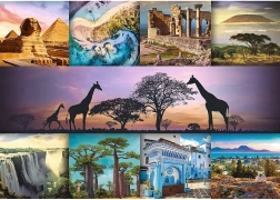 Fedezze fel az ikonikus afrikai szimbólumokat és természeti szépségeket a kollázs puzzle-ökön keresztül.