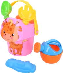 Színes műanyag homokozó készlet kis építőknek, amellyel pillanatok alatt készülnek a várak és homokformák. Ideális a homokozóba, vízpartra és a kertbe. Mindent tartalmaz, amire szükség van: 15 cm-es vödör, lapát, gereblye, locsolókanna és 2 forma. Ajánlott 3 éves kortól.