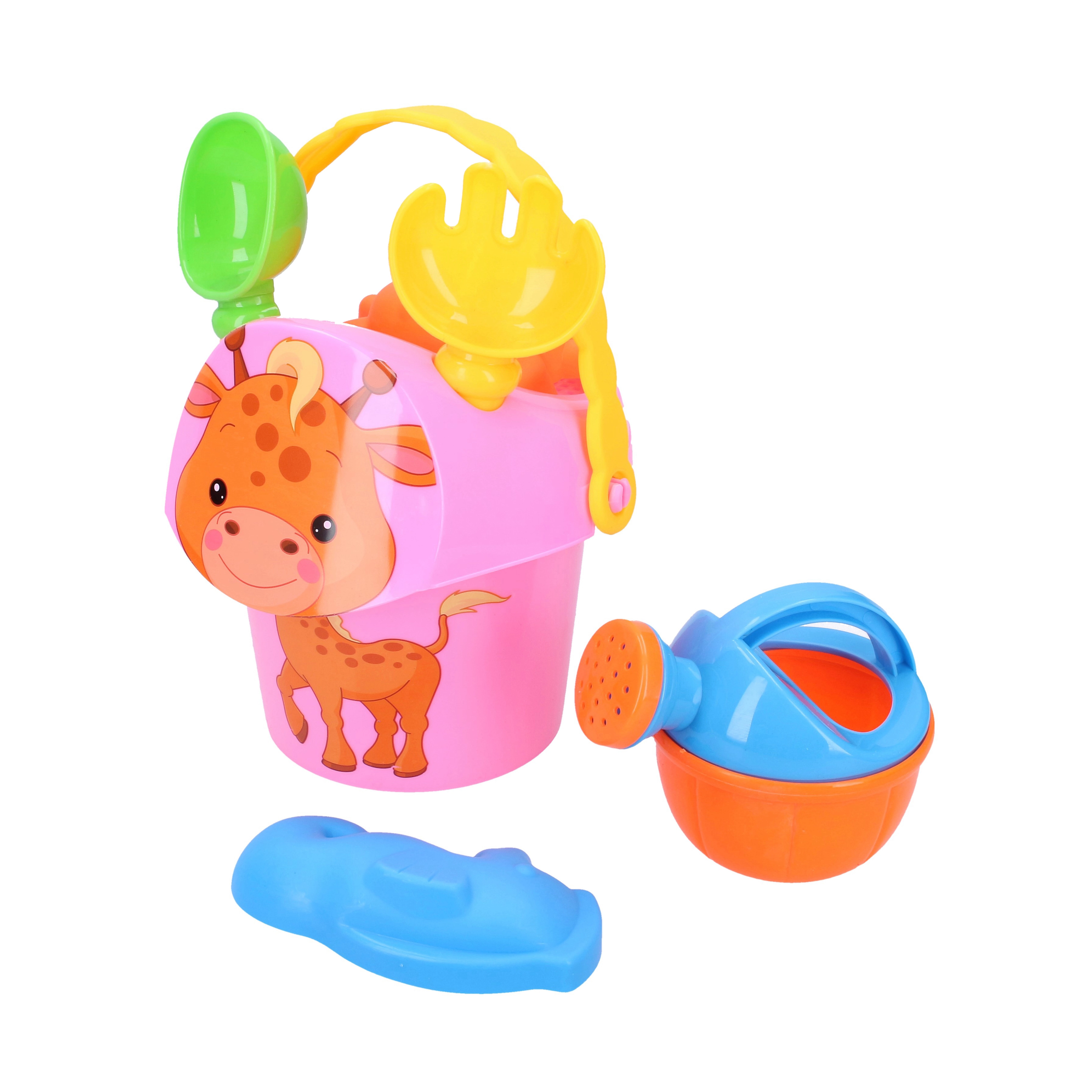 Ez a praktikus homokozó készlet órákon át tartó kreatív szórakozást nyújt a gyerekeknek. A könnyű és tartós műanyag elemeknek köszönhetően a használat egyszerű és biztonságos. A színes kivitel és az állatképes vödör serkenti a fantáziát és motivál a szabadtéri játékra.
