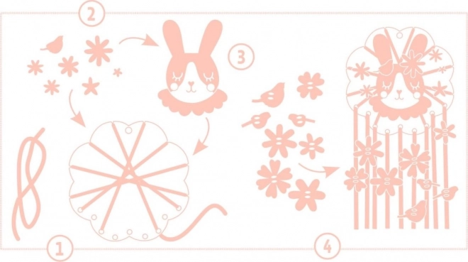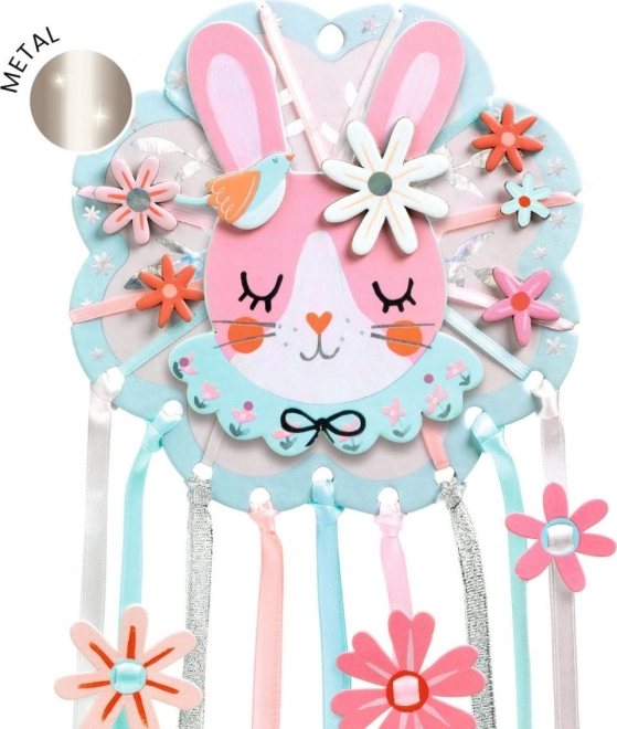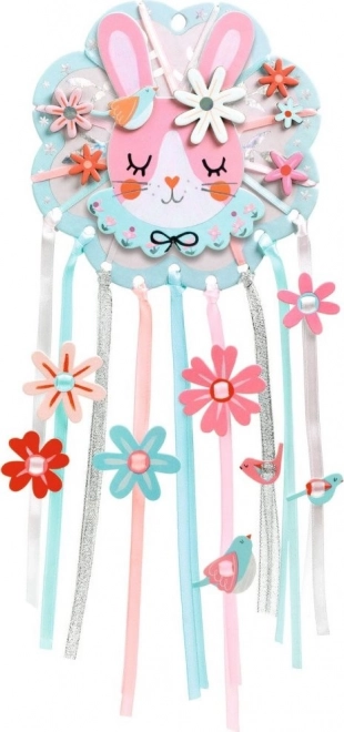 A DIY Álomfogó Nyuszi a DJECO-tól egy kreatív készlet a legkisebbek számára. A gyerekek díszíthetik a nyuszi fejét kollázs technikával, és színes virágokat fűzhetnek színes szalagokra és zsinórokra. Ezzel nemcsak a finommotoros készségeiket fejlesztik, hanem a kreativitásukat és a türelmüket is. A teljes készítés ragasztó és olló használata nélkül zajlik.